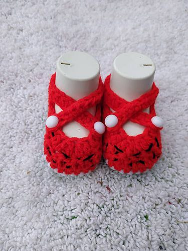 This fast and easy crochet baby girl shoes contains instructions for 3 sizing options which are 0-3(3-6, 6-9) months which are 3.5(4.0, 4.5) inches soles.