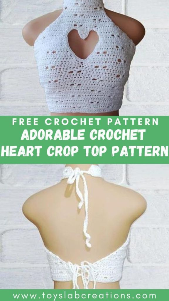 The crochet heart crop top pattern has only one sizing option. This blog post contains the written instructions for the backless crochet crop top. It fits bust size 32-38 inches. The written pdf pattern contains photo tutorials. The free pattern is written below.