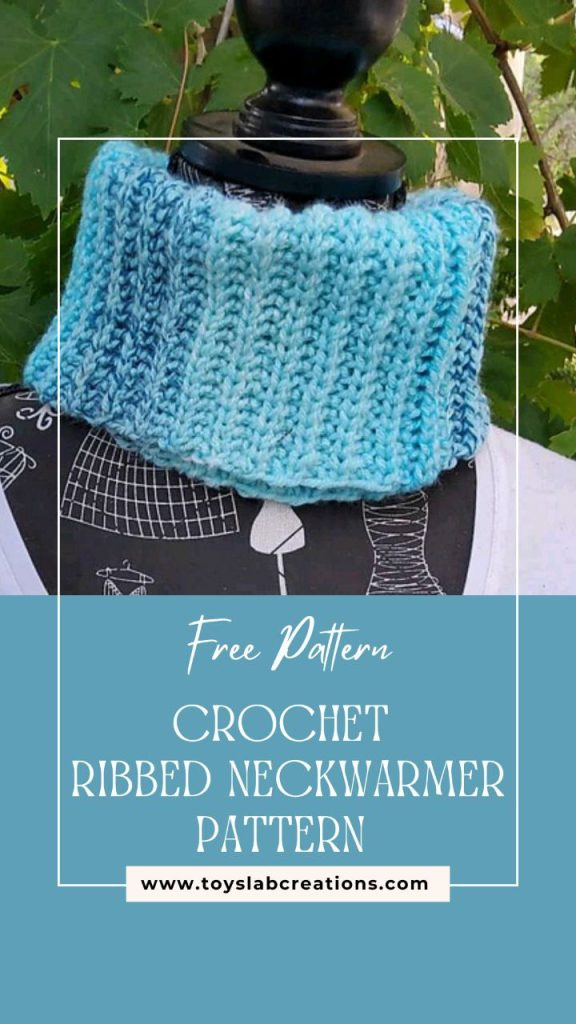 This crochet ribbed neckwarmer has only one sizing option. This blog post contains the written instructions for this crochet knit look neck warmer to help you keep warm and cozy during the winter days. You can get the ad-free pattern that contains photos.