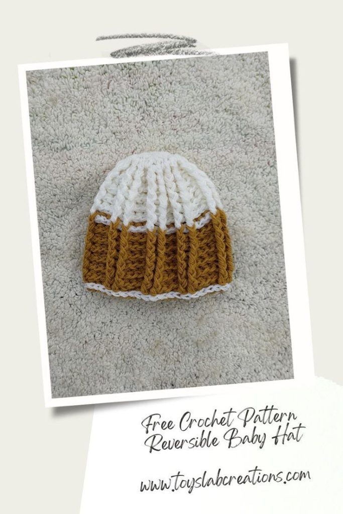The reversible crochet beanie has seven sizing options from size 0-3 months up to large adult size. Yes! Everyone in the family can get a similar hat! This blog post contains the written instructions for this crochet reversible hat in size 0-3 months to help keep your baby warm and cozy. It’s very beginner friendly and a very easy pattern.
